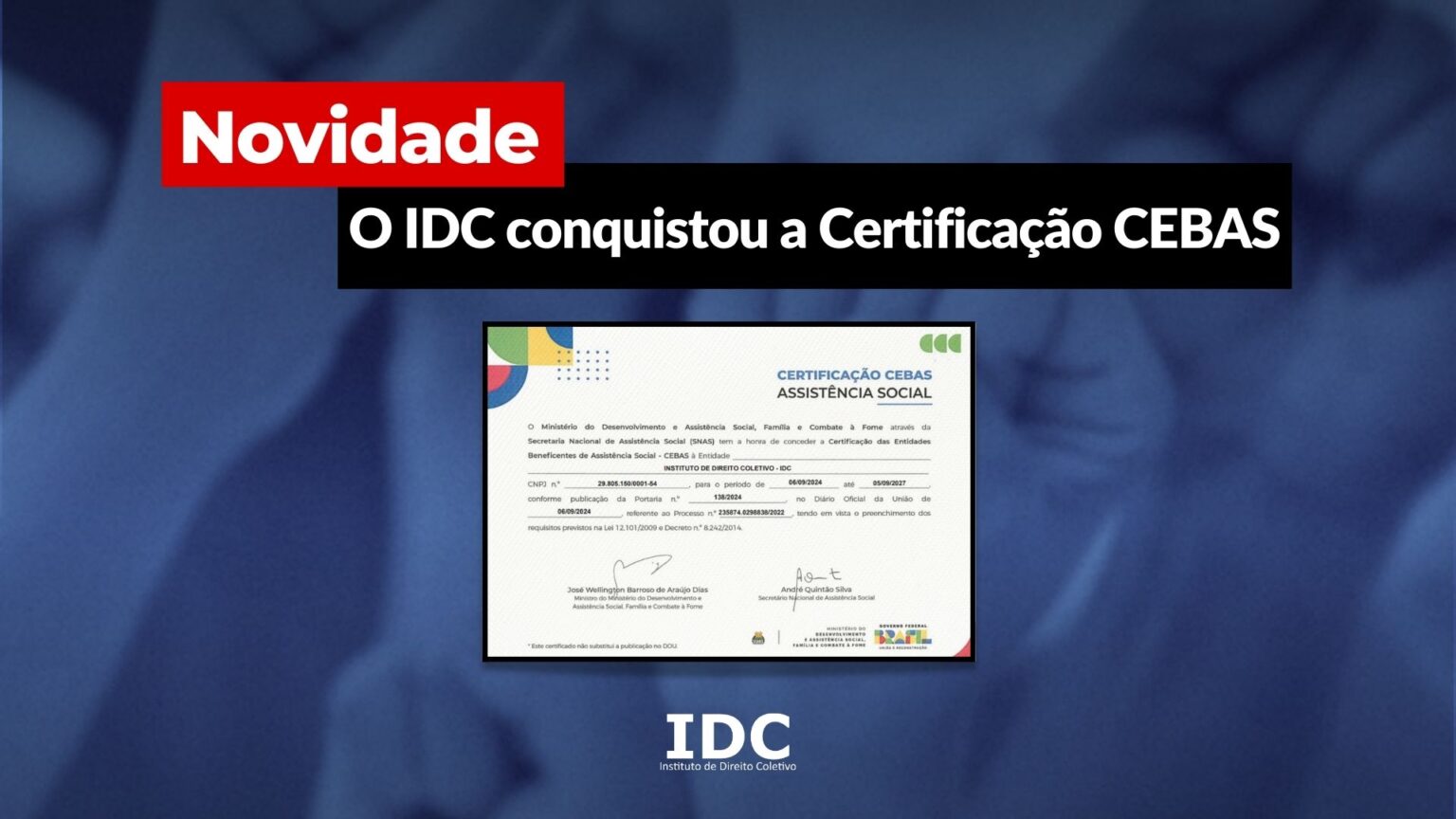 IDC Conquista Certificação CEBAS: Um Marco para a Assistência Social